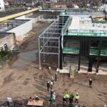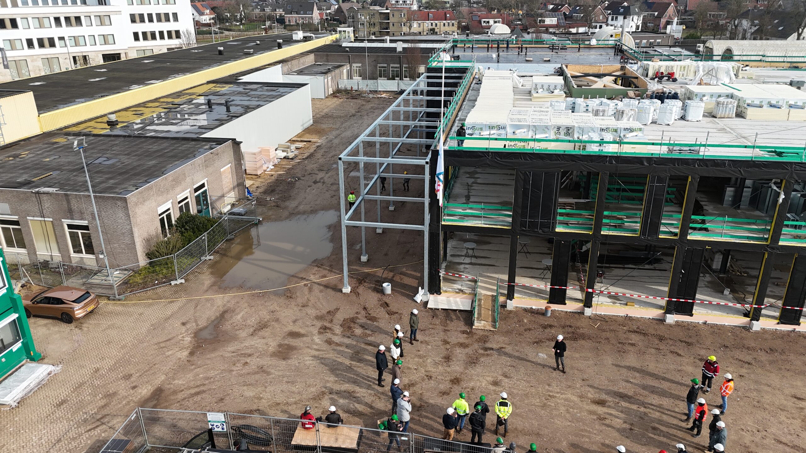 Elke dag worden de contouren van het nieuwe gebouw beter zichtbaar.