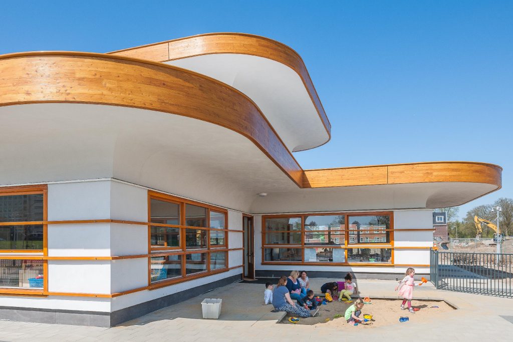 In de brede school Kerckebosch zijn twee scholen, de katholieke Damiaanschool en de openbare Montessorischool, en kinderopvang (kinderdagopvang, peuterspeelzaal en buitenschoolse opvang) gehuisvest en bestaat uit vier aan elkaar geschakelde kappen. Beide scholen hebben één kap, het hart heeft er twee. Door de verschillende kappen precies tussen de bestaande bomen in te schuiven, breng je […]